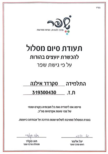 I have studied individual and group counseling for over 12 years at the Shefer Institute - Merkaz Shefer in Jerusalem.